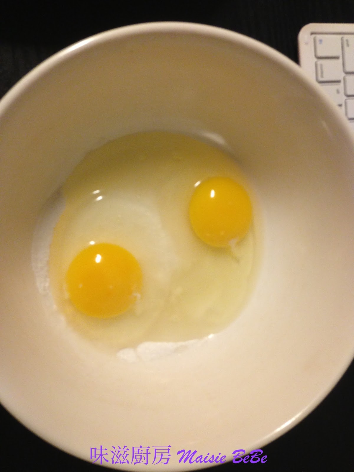 另用新碗把雞蛋加入砂糖A混合至砂糖融化,加入餘下的100ml牛奶,混合均勻成牛奶雞蛋液